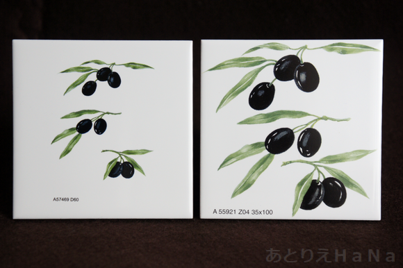 ※絵柄の中の葉っぱの部分の焼成前の色合いは、黄褐色がかっています。適切に焼成することで緑色に発色します。焼成後の発色例は、下に表示しております焼成見本をご参照ください。